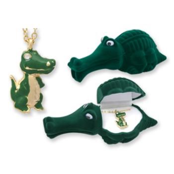 Alligator Animal Necklace in Alligator Box Its a Jungle Out There...Be a Part of it Unique and Fun Animal Pendants in the Most Adorable Velour Boxes This wholesale bulk discount cheap childrens jewelry comes with Sterling Silver or 18 kt Gold Finish Make Sure You Check Out the Other 25 Animal Necklaces Lead and Cadmium Safe Case Pack 24 Please note: If there is a color/size/type option, the option closest to the image will be shipped (Or you may receive a random color/size/type).