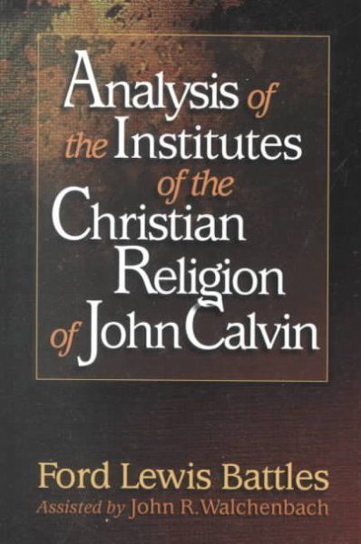 Book annotation not available for this title. Title: Analysis of the Institutes of the Christian Religion of John Calvin Author: Battles, Ford Lewis/ Walchenbach, John Publisher: Presbyterian & Reformed Pub Co Publication Date: 2001/02/01 Number of Pages: Binding Type: PAPERBACK Library of Congress: 00051663 Additional Details \N BOOK TYPE : NF BRAND : Battles, Ford Lewis/ Walchenbach, John LANGUAGE : ENGLISH PUBLISH DATE : 2001/02/01 PUBLISHER IMPRINT CODE : PRESB PUBLISHER NAME : PRESBYTERIAN & REFORMED PUB CO RETURNS ACCEPTED? : YES