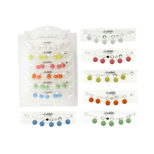 Silvertone?anklet with acrylic disc dangles, assorted colors, lobster claw clasp, individually carded and poly bagged, displayed six up on peggable card." Case Pack 60 Please note: If there is a color/size/type option, the option closest to the image will be shipped (Or you may receive a random color/size/type). Additional Details As we rotate stock, everything with an expiration date will have at least a 2 year shelf life (unless otherwise specified)null BRAND : DDI PRODUCT_CODE_TYPE : UPC
