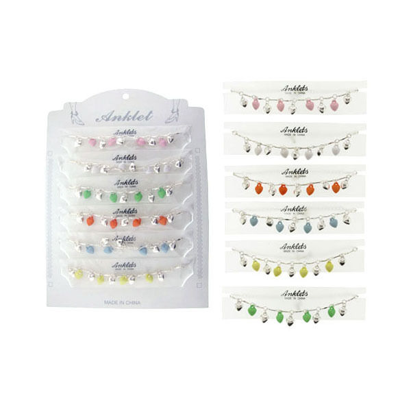 Silvertone chain?anklet with Silvertone and acrylic?heart dangles. Assorted colors. Lobster claw clasp. Individually carded and poly bagged. Six anklets per peggable card. Case Pack 60 Please note: If there is a color/size/type option, the option closest to the image will be shipped (Or you may receive a random color/size/type). Additional Details As we rotate stock, everything with an expiration date will have at least a 2 year shelf life (unless otherwise specified)null BRAND : DDI PRODUCT_CODE : NA PRODUCT_CODE_TYPE : UPC