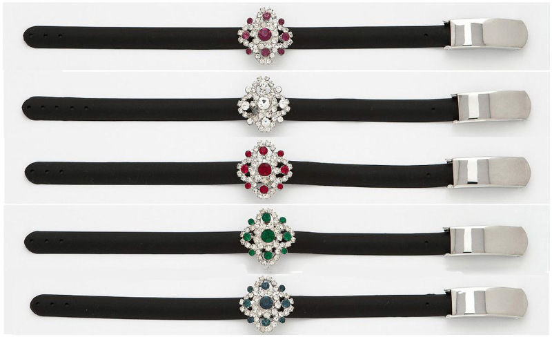 Austrian Crystal Bracelets with black straps. Adjustable Bracelet strap in black color with elegant lock. Five best colors packed in a dozen pack.