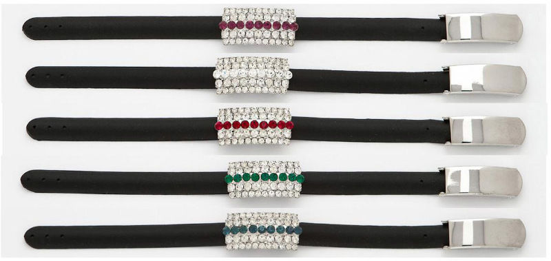 Austrian Crystal Bracelets with black straps. Adjustable Bracelet strap in black color with elegant lock. Five best colors packed in a dozen pack.