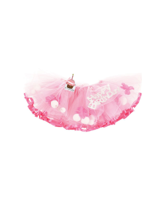 Dress up fun but even better when its your birthday. From Mud Pie's LIL Cupcake Collection comes their pink baby birthday tutu sure to dazzle any little princess or ballerina on her big day. This is no ordinary tutu. The birthday tutu has 3 separate layers of super fluffy tulle trimmed with pink satin ribbon. Inside each layer of tulle are flower peddles, fluff balls, pom poms and a metallic cutouts that says "Happy Birthday". The tutu's elastic waistband allows little ones from 0-18 months to enjoy their fluffy fun tutu both before, during and after their big day. BRAND : MUDPIE