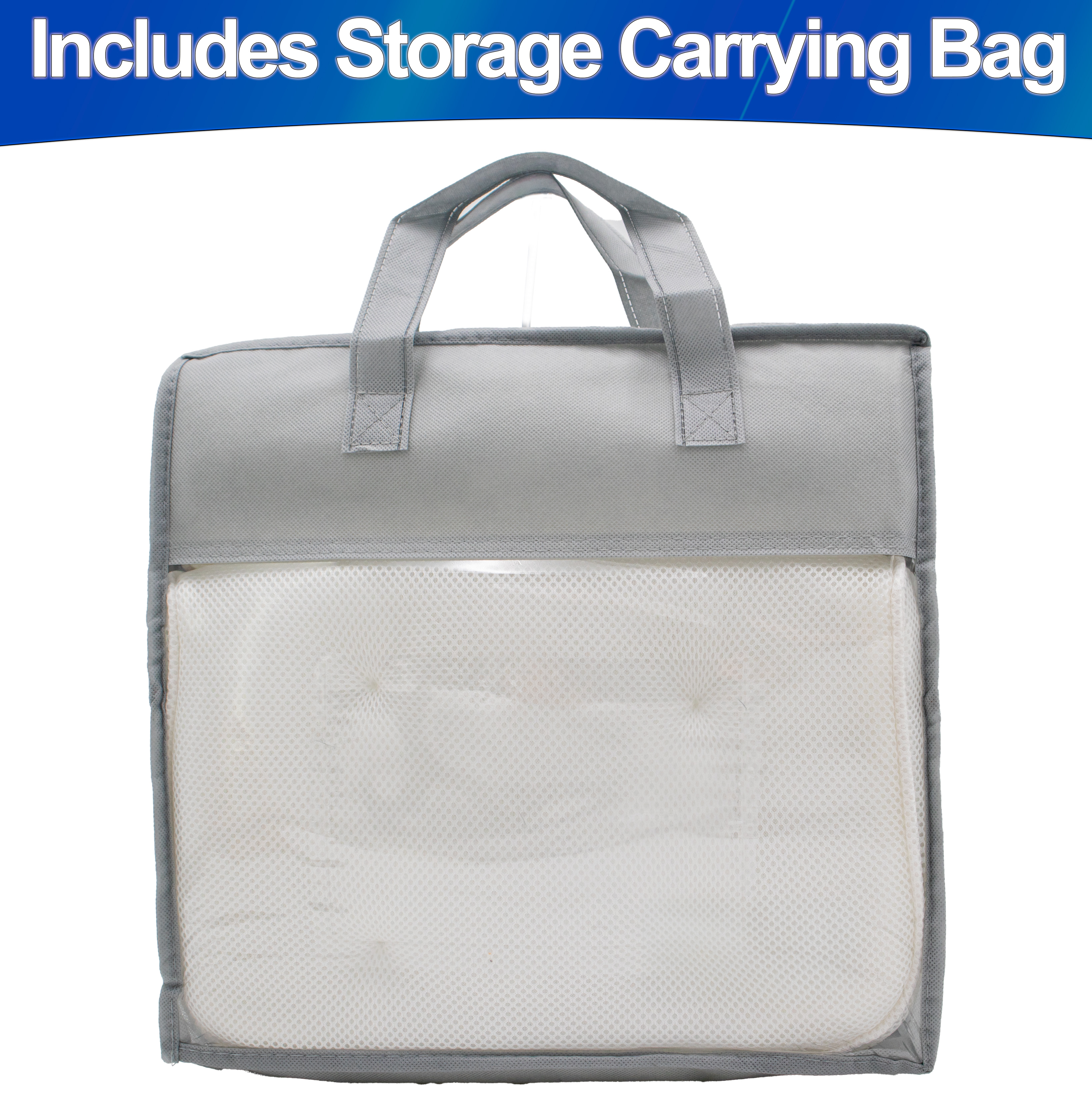 Practical features meet comfort: quick-dry 3D mesh, a machine-washable cover, an attached hanging hook, and a carry bag make this a low-maintenance tub pillow that’s easy to store and gift. Dimensions and construction are shown on-pack so you can check fit (about 14.5 × 14 × 3 in); the non-powered design stays simple and safe. Backed by visible product claims, this pillow focuses on stability, breathability and convenience — a tidy upgrade to everyday baths that keeps relaxation reachable.