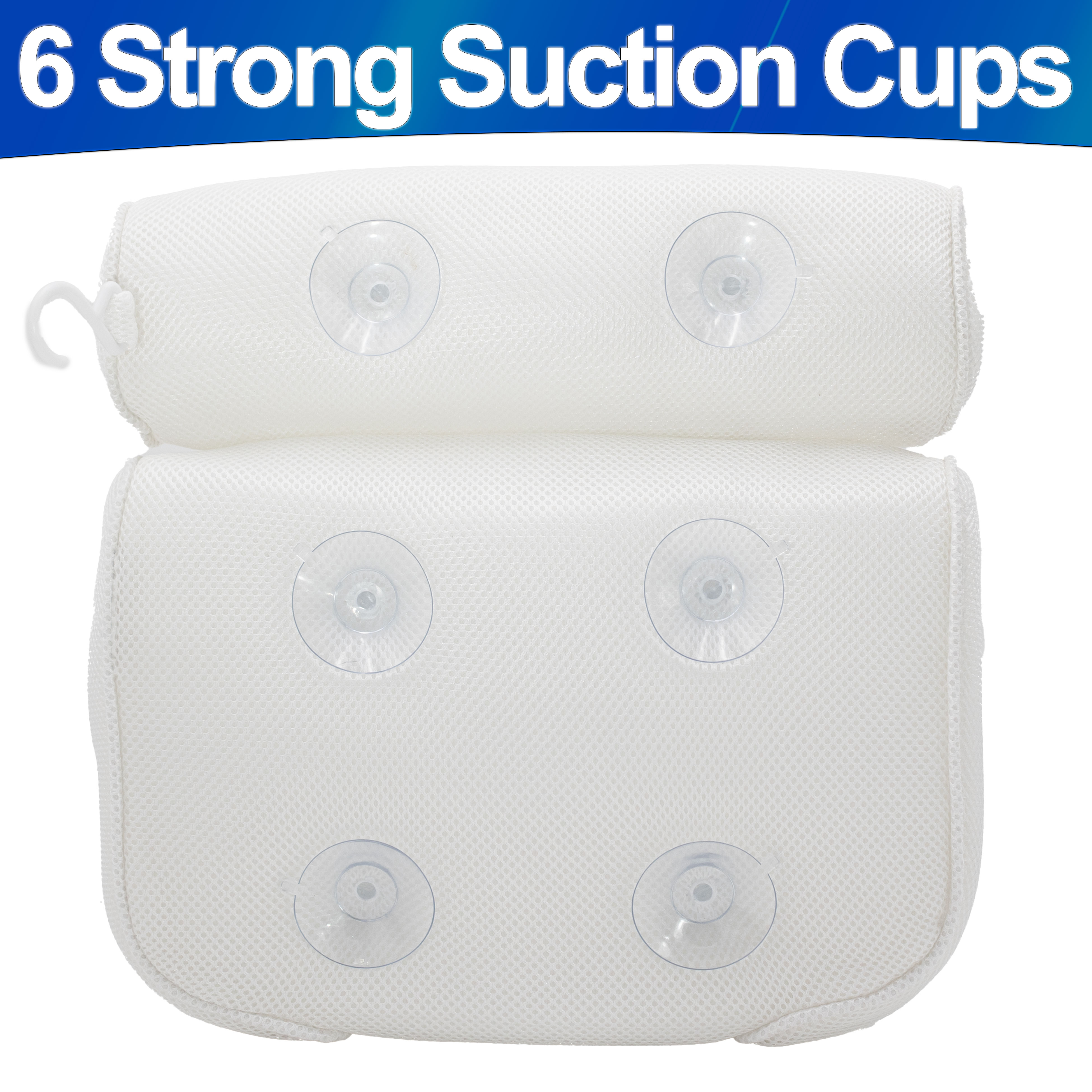 | Bath Pillow for Tub – Ergonomic Dual-Roll Headrest with Breathable 3D/4D Mesh, 6 Suction Cups, Machine Washable Cover, Integrated Hook and Carry Bag — 2.4" Cup Diameter & Quick-Dry Mesh for Home & Travel |