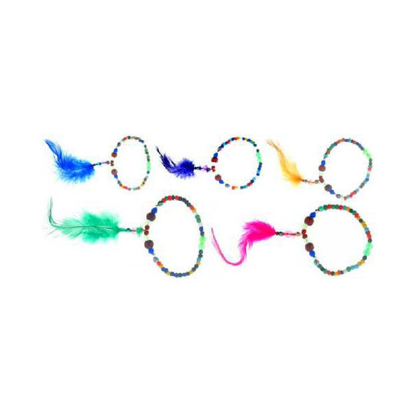 Bracelet, multicolor seed beads on an elastic band, featuring assorted color feather pendants. Colors include pink, violet, green, and yellow." Case Pack 60 Please note: If there is a color/size/type option, the option closest to the image will be shipped (Or you may receive a random color/size/type).