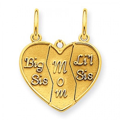 This Is a Mesmerizing Big Sis, Mom, Lil Sis Heart Charm Crafted of 14k Yellow Gold. It Has a Heart with "Big Sis", "Little Sis", "Mom" Figure. This Charm Is Concluded to a Glossy Like Polish Metal. Get a Hold of This Compelling Big Sis, Mom, Lil Sis Heart Charm Now and Have an Endless Customizable Accessory. Processing Time: 1 days. BRAND : GEMAFFAIR CHAIN TYPE : NO CHAIN TYPE CLASP TYPE : NO CLASP TYPE HEIGHT : 1 LENGTH : 22 METAL STAMP : 1.4 METAL TYPE : YELLOW GOLD METAL UNIT OF MEASURE : GRAMS TOTAL METAL WEIGHT : 14K UNIT OF MEASURE (DIMENSIONS) : MM WIDTH : 17