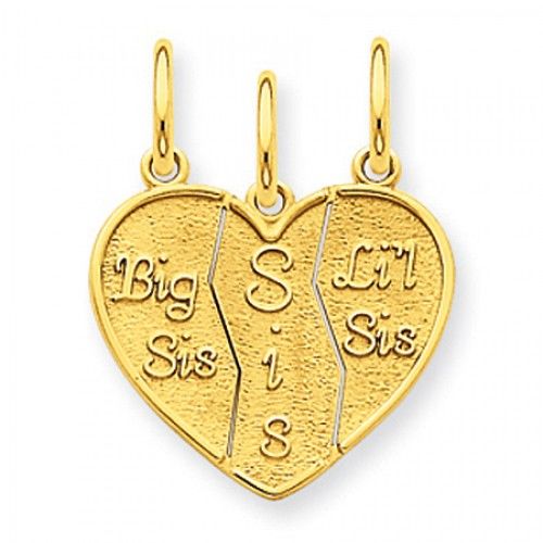 We Offer This Lovable Big Sis, Sis, Lil Sis Heart Charm Assembled of 14k Yellow Gold. It Has a Heart with "Lil Sis", "Big Sis", "Sis" Form. This Charm Is Done to a Mirror Like Finish Metal. Get This Amazing Big Sis, Sis, Lil Sis Heart Charm Now and Acquire a Limitless Personalized Accent. Processing Time: 1 days. BRAND : GEMAFFAIR CHAIN TYPE : NO CHAIN TYPE CLASP TYPE : NO CLASP TYPE HEIGHT : 1 LENGTH : 22 METAL STAMP : 1.6 METAL TYPE : YELLOW GOLD METAL UNIT OF MEASURE : GRAMS TOTAL METAL WEIGHT : 14K UNIT OF MEASURE (DIMENSIONS) : MM WIDTH : 17