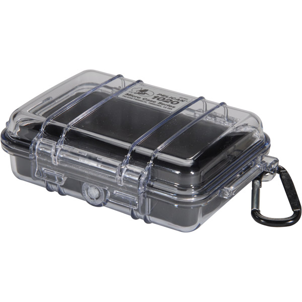 1020 MICRO CASE BLK W/CLEAR LIDLINER 5.31X3.56X1.6 CLEAR BLACK Great for rugged sportsnot for swimming or submerging Water-resistant, crush-proof and dust-proof Rubber liner for extra protection doubles as O-Ring seal Automatic pressure equalization valveStainless steel hardware Interior: 5 5/16" W x 3 9/16" H x 1 11/16" DLifetime guarantee Includes carabiner BRAND : PELICAN