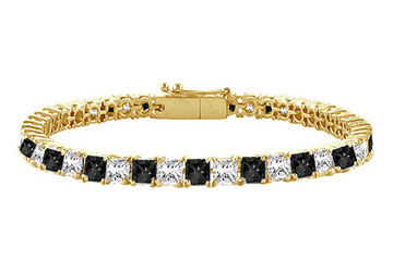 Black and White Diamond Princess-Cut Tennis Bracelet 14K Yellow Gold 5.00 CT Diamonds |