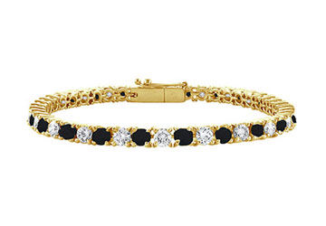 Giving a captivating contrast intense black diamonds alternate with brilliant-cut round white diamonds in the prong-setting. Made in 14K Yellow Gold this black and white diamond tennis barcelet has a total weight (TDW) of 1.00 carat.