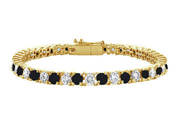Black and White Diamond Prong-Set Tennis Bracelet 14K Yellow Gold 5.00 CT Diamonds |