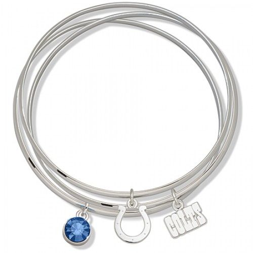 Now You Don'T Have to Sacrifice Style to Support Your Favorite Nfl Team with This Indianapolis Colts Bangle Bracelet Set. This Delightful Accessory Features Three Silver Tone Bangles with a Polished Finish. Each Indianapolis Colts Bangle Comes with Their Own Silver Tone Charm Including a Blue Colored Crystal and the Official Colts Logo. Let the Ladies Show Off Their Team Spirit with This Indianapolis Colts Bangle Bracelet Set. Processing Time: 4 days. BRAND : NFL Officially Licensed CHAIN TYPE : OTHER CHAIN TYPE CLASP TYPE : NO CLASP TYPE GEM TYPE : QUARTZ METAL STAMP : 28.3 METAL TYPE : SILVER PLATED METAL UNIT OF MEASURE : GRAMS SIZE : 7 STONE CLARITY : I1 STONE COLOR : BLUE STONE COLOR - 3 : BLUE STONE CUT : VERY GOOD CUT STONE SHAPE : ROUND SHAPE STONE WEIGHT : 1.00 TOTAL GEM WEIGHT : 1.00 TOTAL METAL WEIGHT : NO METAL STAMP UNIT OF MEASURE (DIMENSIONS) : IN
