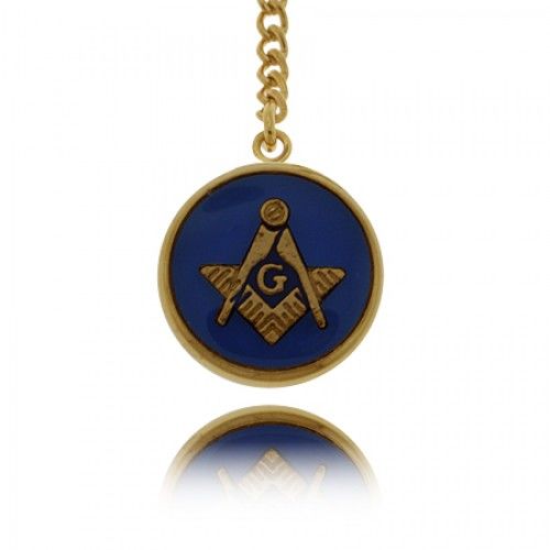 Blue Masonic Tie Tack in Gold Tone Round with Signet |
