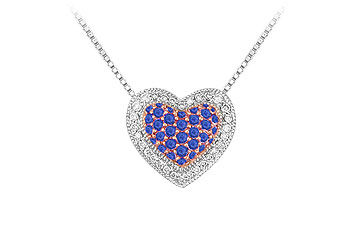 Blue Sapphire and Diamond Heart Pendant 14K White Gold - 0.75 CT TGW |