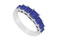 A square bigger deep azure sapphire is set atop in the center between three graduating square sapphires on both sides. Made in 14K white gold this ring has a total gem weight (TGW) of 2.25 carat.