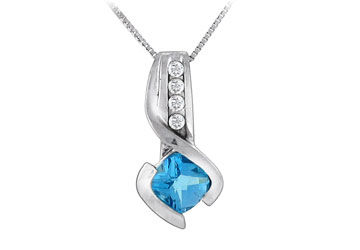 A square icy blue topaz is delicately set in a 14K white gold frame studded with four diamonds. This pendant has a total gem weight (TGW) of 1.50 ct. BRAND : FINEJEWELRYVAULT
