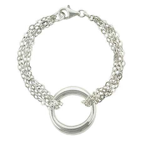 A bold O dangles in the center of slender silver leaf shaped links in this Chic bracelet.>