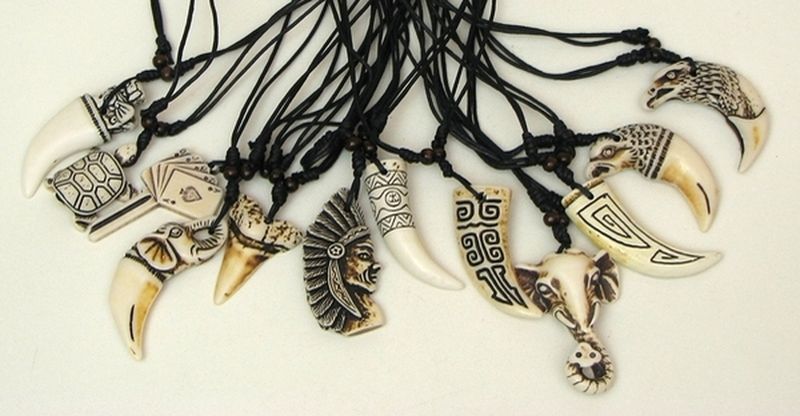 Resin made to look like real bone designs with adjustable nylon necklace. Each design measures approximately 1.25"W x 2.5"H and the necklace can vary from 18.5" up to 36".