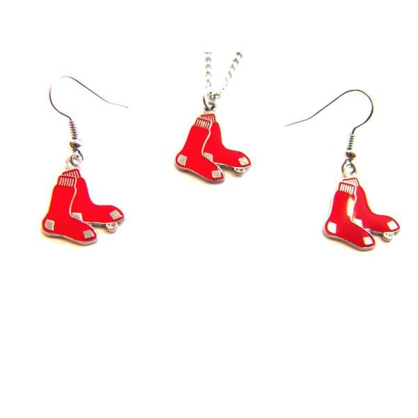 Boston Red Sox Necklace & Dangle Earring Simple and bold, this MLB Boston Red Sox Necklace and Earring Set is a must-have accessory to complete your game day wardrobe! The nickel-finish charm and earrings are decorated with your MLB team's logo. Necklace comes with 18-inch chain. These are metal and wire earrings for pierced ears, nickel-finish, and hypoallergenic. Officially licensed MLB product. Logo approximately 3/4" EACH in diameter. Fish hook earring hanger. Imported." Sold Individually Please note: If there is a color/size/type option, the option closest to the image will be shipped (Or you may receive a random color/size/type). BRAND : AMINCO PRODUCT_CODE : 763264173841 PRODUCT_CODE_TYPE : UPC