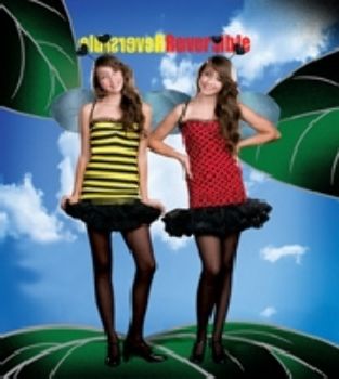 Fully reversible Bumble Bee/Lady Bug stretch knit dress with removable clear shoulder straps and tutu hem detail. Includes antenna headband and wings. Junior SM 3-5. Sold Individually Please note: If there is a color/size/type option, the option closest to the image will be shipped (Or you may receive a random color/size/type). BRAND : WMU PRODUCT_CODE : 876802118928 PRODUCT_CODE_TYPE : UPC