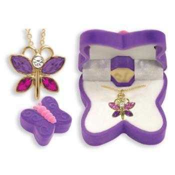 Butterfly Animal Necklace in Butterfly Box Its a Jungle Out There...Be a Part of it Unique and Fun Animal Pendants in the Most Adorable Velour Boxes Comes with Sterling Silver or 18 kt Gold Finish Make Sure You Check Out the Other 25 Animal Necklaces Lead and Cadmium Safe Case Pack 24 Please note: If there is a color/size/type option, the option closest to the image will be shipped (Or you may receive a random color/size/type).