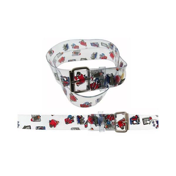 1" clear vinyl children's belt with grade school motif screen print accents and roller buckle, fits 26-30" waist." Case Pack 48 Please note: If there is a color/size/type option, the option closest to the image will be shipped (Or you may receive a random color/size/type). Additional Details As we rotate stock, everything with an expiration date will have at least a 2 year shelf life (unless otherwise specified)null BRAND : DDI PRODUCT_CODE_TYPE : UPC