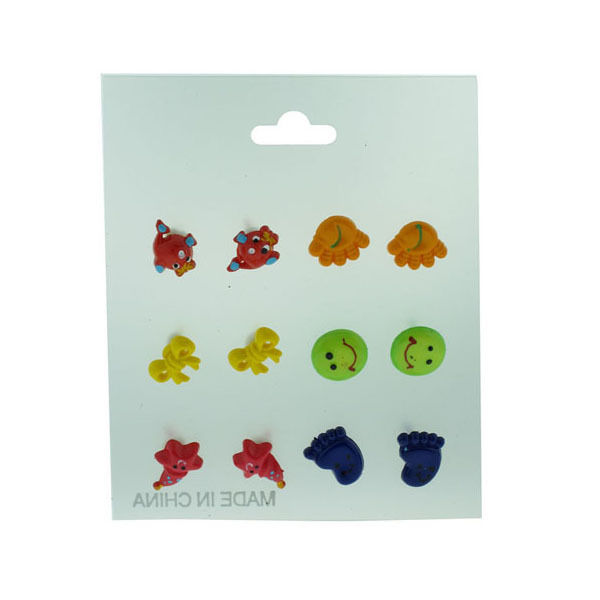 Children's post earrings; no metal; assorted designs and colors; six pair per card; individually carded and poly bagged." Case Pack 60 Please note: If there is a color/size/type option, the option closest to the image will be shipped (Or you may receive a random color/size/type). BRAND : DDI PRODUCT_CODE_TYPE : UPC