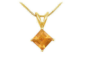 A square natural citrine is securely held in a luscious 14K yellow gold prong setting. This gemstone pendant has a total weight (TGW) of 1.00ct and comes with a standard 16 14K yellow gold chain.