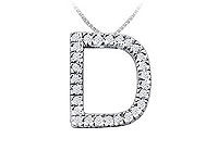 Twenty-seven brilliant-cut round diamonds are prong-set in a timeless classic letter D to wear your personality in a more simple yet elegant way. Made in 14K white gold this initial pendant has a total weight (TDW) of 0.45 ct.