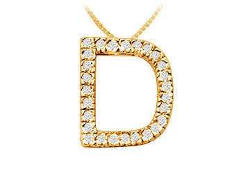 Twenty-seven brilliant-cut round diamonds are prong-set in a timeless classic letter D to wear your personality in a more simple yet elegant way. Made in 14K yellow gold this initial pendant has a total weight (TDW) of 0.45 ct.