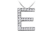 Twenty-five brilliant-cut round diamonds are prong-set in a timeless classic letter E to wear your personality in a more simple yet elegant way. Made in 14K white gold this initial pendant has a total weight (TDW) of 0.40 ct.