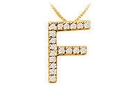 Eighteen brilliant-cut round diamonds are prong-set in a timeless classic letter F to wear your personality in a more simple yet elegant way. Made in 14K yellow gold this initial pendant has a total weight (TDW) of 0.25 ct.