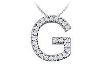 Twenty-five brilliant-cut round diamonds are prong-set in a timeless classic letter G to wear your personality in a more simple yet elegant way. Made in 14K white gold this initial pendant has a total weight (TDW) of 0.40 ct.
