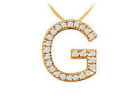 Twenty-five brilliant-cut round diamonds are prong-set in a timeless classic letter G to wear your personality in a more simple yet elegant way. Made in 14K yellow gold this initial pendant has a total weight (TDW) of 0.40 ct.