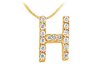 Fifteen brilliant-cut round diamonds are prong-set in a timeless classic letter H to wear your personality in a more simple yet elegant way. Made in 14K yellow gold this initial pendant has a total weight (TDW) of 0.15 ct.
