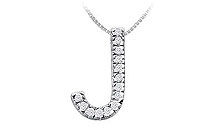 Fourteen brilliant-cut round diamonds are prong-set in a timeless classic letter J to wear your personality in a more simple yet elegant way. Made in 14K white gold this initial pendant has a total weight (TDW) of 0.25 ct.