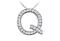 Twenty-nine brilliant-cut round diamonds are prong-set in a timeless classic letter Q to wear your personality in a more simple yet elegant way. Made in 14K white gold this initial pendant has a total weight (TDW) of 0.45 ct.