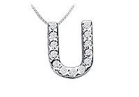 Thirteen brilliant-cut round diamonds are prong-set in a timeless classic letter 'U' to wear your personality in a more simple yet elegant way. Made in 14K white gold this initial pendant has a total weight (TDW) of 0.15 ct.