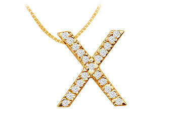 Twenty-one brilliant-cut round diamonds are prong-set in a timeless classic letter X to wear your personality in a more simple yet elegant way. Made in 14K yellow gold this initial pendant has a total weight (TDW) of 0.33 ct.