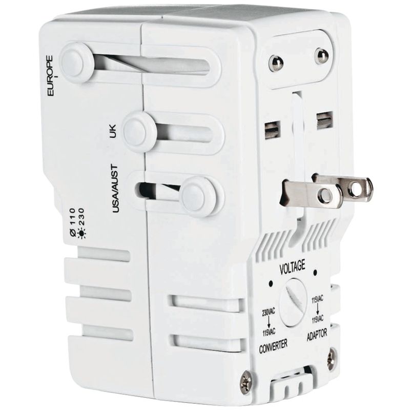 CONAIR TS253AD Power Adapter/Converter with Surge Protection Adapter/converter combination with surge protection; 2 modesadapter only or adapter/converter combo; For use with US appliances (110V - 120V) overseas; Converts foreign electricity (220V - 240V) to (110V - 120V); Easy-to-use, all-in-one adapter & converter combo unit fits electrical outlets in most commonly visited countries; Built-in surge protector keeps electrical appliances safe from spikes in foreign electricity BRAND : CONAIR