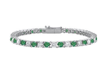 This never ending chain of alternating created round emeralds and white CZs symbolizes your timeless love. Crafted in 10K white gold held in a prong setting this tennis bracelet has a total gem weight (TGW) of 2.00 carats. A great way to honor your union.