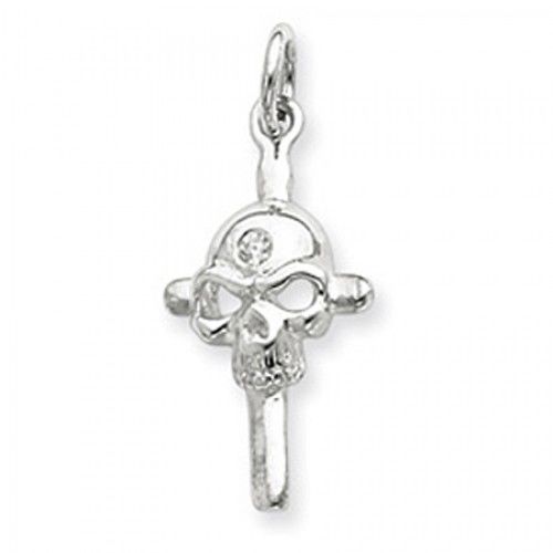 Cubic Zirconia Skull Cross Charm in Sterling Silver - Round Shape - Elegant |