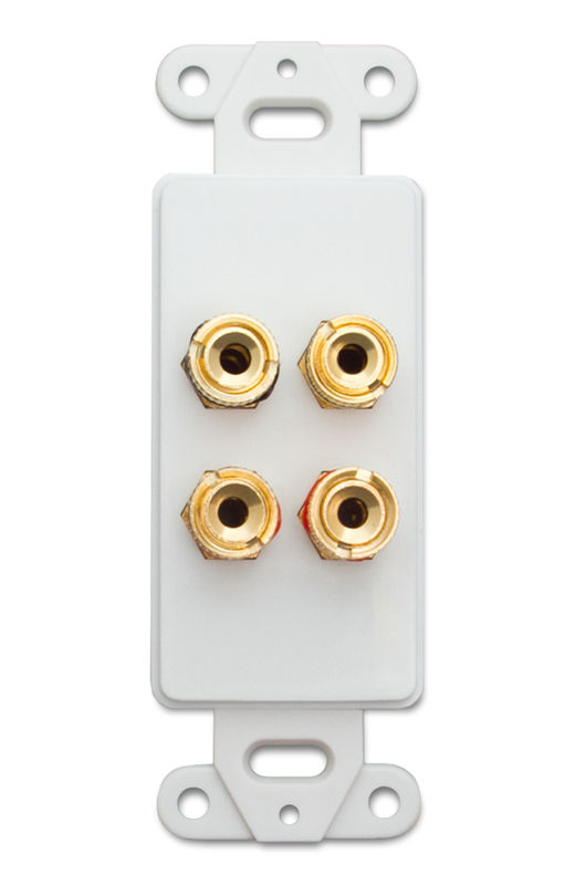 | Decora Wall Plate Insert, White, 4 Banana Plug Binding Posts For 2 Speakers |