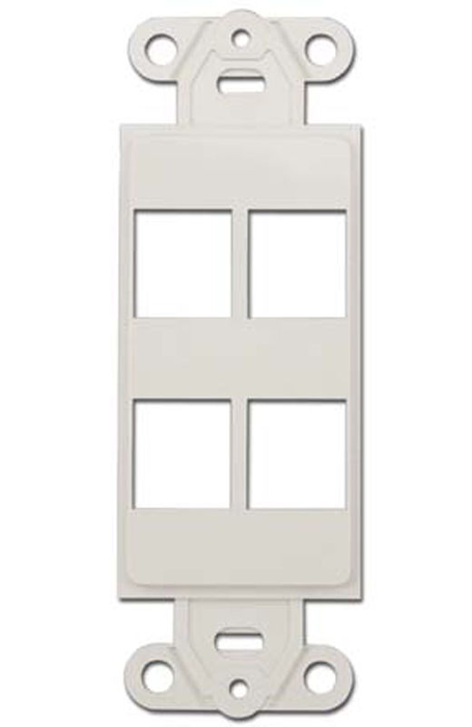 4 Hole Keystone White Decora Wall Plate Insert, 4 Hole for Keystone Jack, Single Gang.