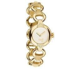 Polished stainless steel gold-tone adjustable link bracelet with ridges Polished stainless steel gold-tone case White dial Jewelry clasp Quartz movement 30 meters/100 feet water resistant D&G logo at 6 o'clock position