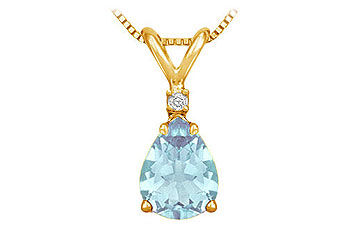 Question Diamond and Aquamarine Solitaire Pendant  14K Yellow Gold - 1.00 CT TGWHave A Question