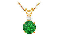 A round natural emerald is securely held in a luscious 14K yellow gold prong setting. Set atop a brilliant-cut diamond adds a touch of style. This gemstone pendant has a total weight (TGW) of 1.00ct and comes with a standard 16 14K yellow gold chain.