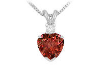 A heart-shaped natural garnet is securely held in a luscious 14K white gold prong setting. Set atop a brilliant-cut diamond adds a touch of style. This gemstone pendant has a total weight (TGW) of 1.00 and comes with a standard 16 14K white gold chain. Available in yellow gold also.