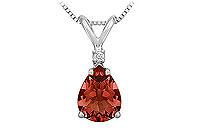 A pear-shaped natural garnet is securely held in a luscious 14K white gold prong setting. Set atop a brilliant-cut diamond adds a touch of style. This gemstone pendant has a total weight (TGW) of 1.00 and comes with a standard 16 14K white gold chain. Available in yellow gold also.